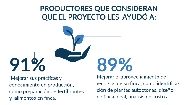 Las comunidades socias del plan pusieron en marcha estrategias que hicieron más rentables y limpios sus procesos de producción, bien fueran cultivos o cría de animales, con miras a ofrecer productos cada vez más amigables con el medio ambiente, cercanos a lo orgánico y, por ende, sostenibles en diversos aspectos. Estos fueron los principales logros del eje de producción: