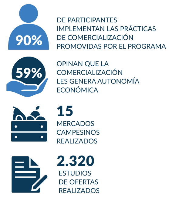 esta forma conectaron comercialmente sus aprendizajes en el mejoramiento de prácticas productivas y fortalecimiento asociativo con la salida de sus productos a los mercados locales, prescindiendo de intermediarios y, en consecuencia, percibiendo mayores ganancias.